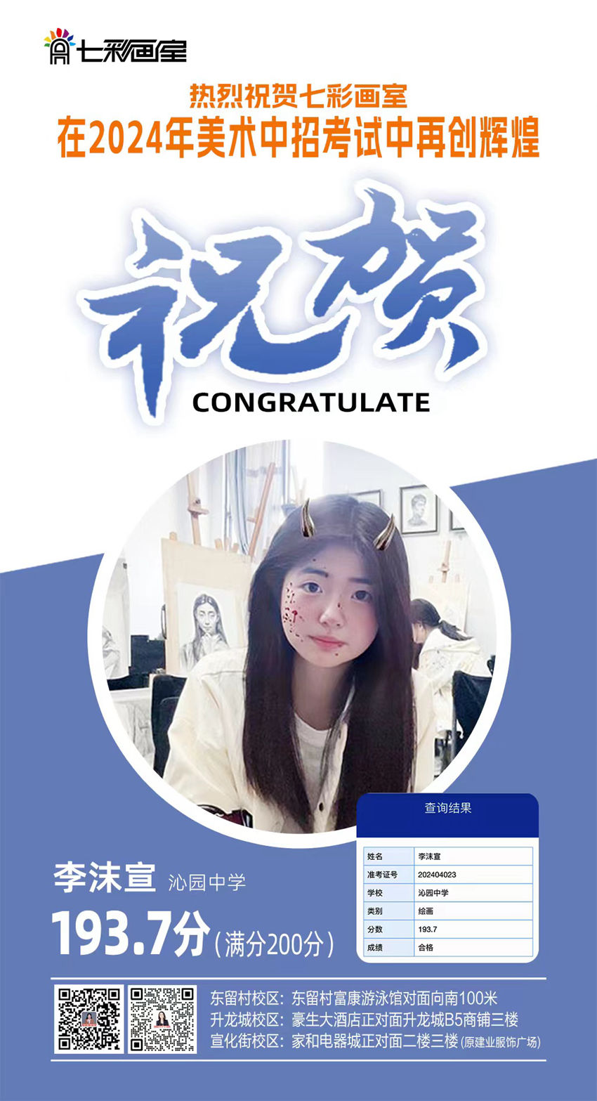 李沫宣 沁园中学 总分193.7分(满分200分)